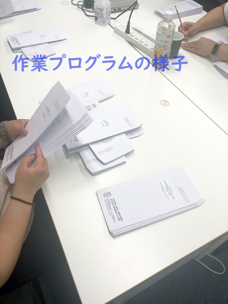 こぶし瑞江ではこのように個別のプログラムとは別に作業を行う訓練プログラムも実施しています。
