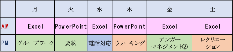 しっかりスケジュール 就職後の勤務時間を想定し、週6フルタイムなど